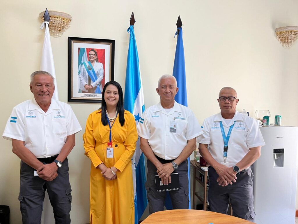 El Secretario Ejecutivo de la #CNPP, Gral. (r) Efraín Ochoa Avilez sostuvo este día junto a su equipo de trabajo una reunión con la Subsecretaria de Desarrollo Económico @SDEHonduras, Lic. @Cinthyarteaga con el objetivo de exponerle los objetivos y propósitos del Primer Congreso de Protección Portuaria.