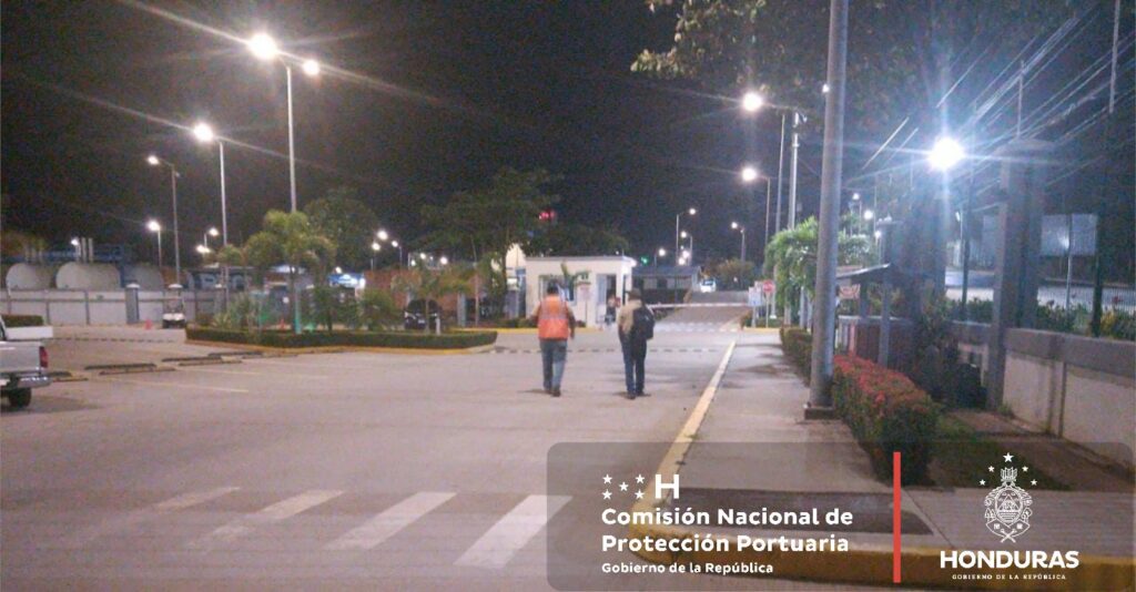 La Inspectoría de Puerto de Roatán de la Comisión Nacional de Protección Portuaria, realiza inspección del sistema de alumbrado de la Instalación Portuaria RECO como parte de los procedimientos de protección para la vigilancia.
