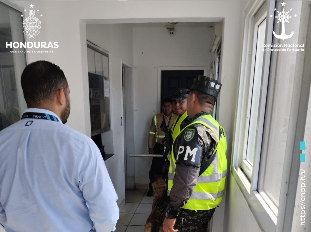 La CNPP supervisa los ejercicios de prueba de 5 niveles de alarma y con el apoyo del Binomio Canino de la policía Militar del Orden Público en inspección de rutina en la instalación portuaria Terminal Especializada de Honduras (TEH).