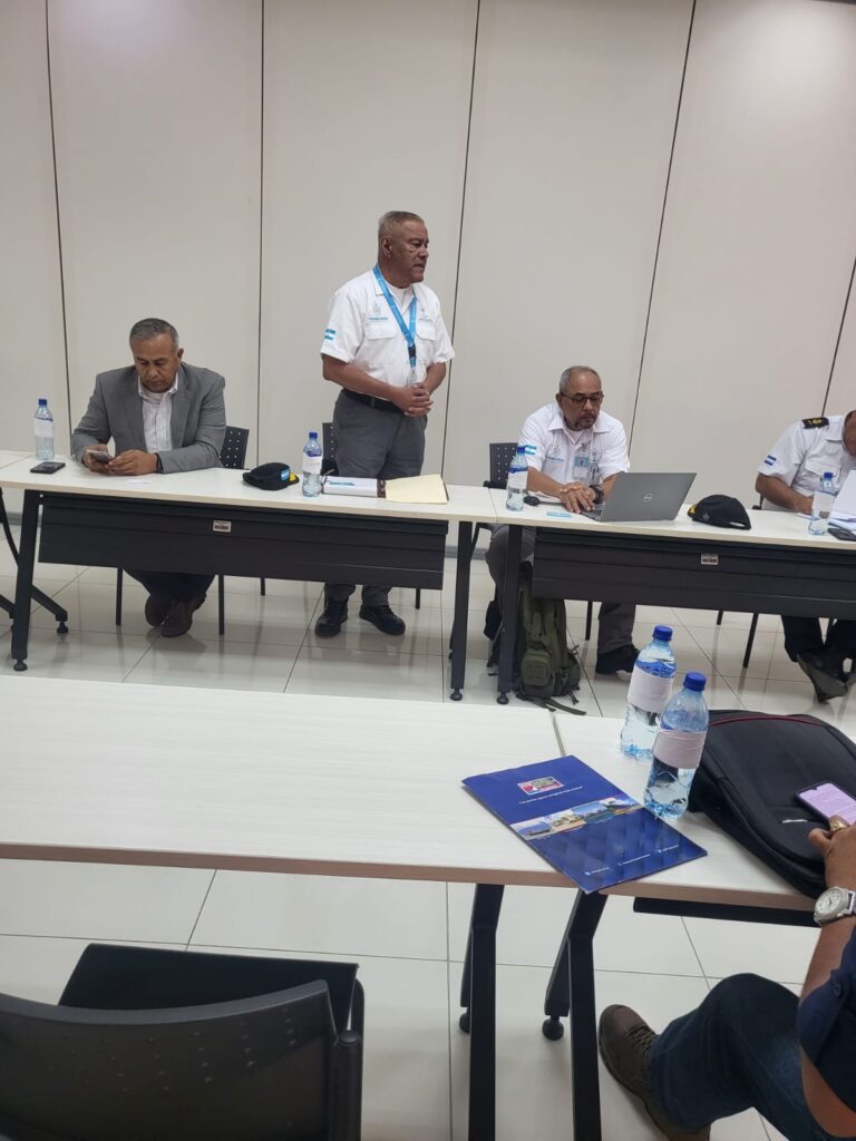 El Señor Secretario Ejecutivo de la CNPP General (r) Efraín Ochoa Avilez realiza visita a su contraparte de la hermana Republica de Nicaragua, la Dirección General de Transporte Acuático (DGTA) siendo recibido por el Comité Nacional de Seguridad Portuaria con el propósito de estrechar relaciones, entre las dos instituciones, intercambio de experiencias y buenas prácticas en materia de protección portuaria, además, de promocionar el Foro Internacional Marítimo-Portuario Roatán 2023 a realizarse del 24 al 28 de julio 2023.